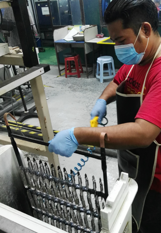 Jigging is essentially the method in which parts are suspended during the process. This serves a dual process as a jig not only holds the component, but being metallic will also provide electrical contact. If there is not a natural place in which the jig can hold the component, then this may leave a witness mark after the metal finishing process has occurred. For large sized components, for example Gaskets, Silchrome may develop specialist jigs and fixtures in order to obtain the best finishing results.